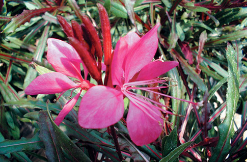 Loads of pink flowers on dark stems. Blooms last all summer and into fall! Great container plants or in the garden. Zone 5-9, Height 18 inches. Plant in full sun. Blooms June to October. Available in gallon pots.