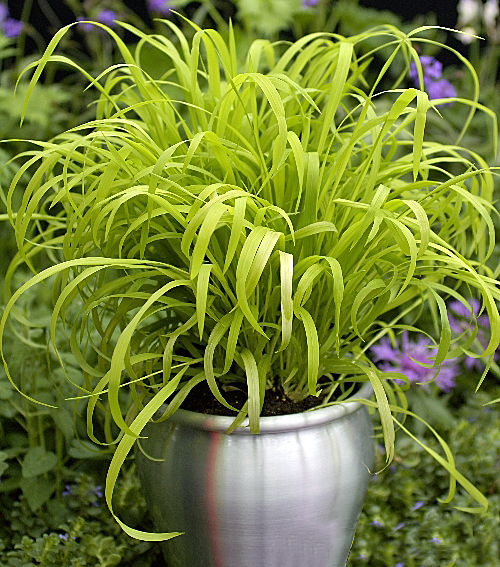 Bright golden-yellow, semi-evergreen grass with an upright habit. Eye-catching selection for borders and planters. Plant in part shade. Hardy to zone 6. Height 18-24 inches. Spread 24 inches. Michigan native cultivar. Available in 4-inch pots: order by # of flats (at 15 pots per flat).